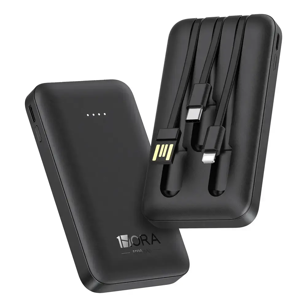 El Power Bank Mini Portátil Batería 5000mah Built In 3 Cables de la marca 1Hora, modelo GAR261, es la solución ideal para mantener tus dispositivos siempre cargados sin importar dónde te encuentres. Con una capacidad de 5000 mAh, este cargador portátil asegura que tu smartphone, tablet o cualquier dispositivo compatible esté siempre listo para usar.