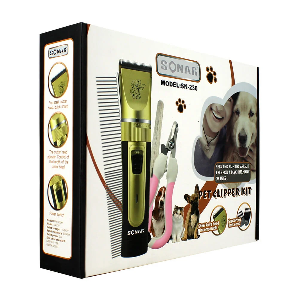 La rasuradora de pelo para mascotas Sonar modelo SN-230 es la herramienta ideal para mantener a tu perro o gato con un pelaje impecable. Su diseño elegante en negro y dorado no solo es atractivo, sino que también ofrece un rendimiento excepcional. Con cuchillas intercambiables, permite adaptarse a diferentes tipos de pelaje, asegurando un corte preciso y cómodo.