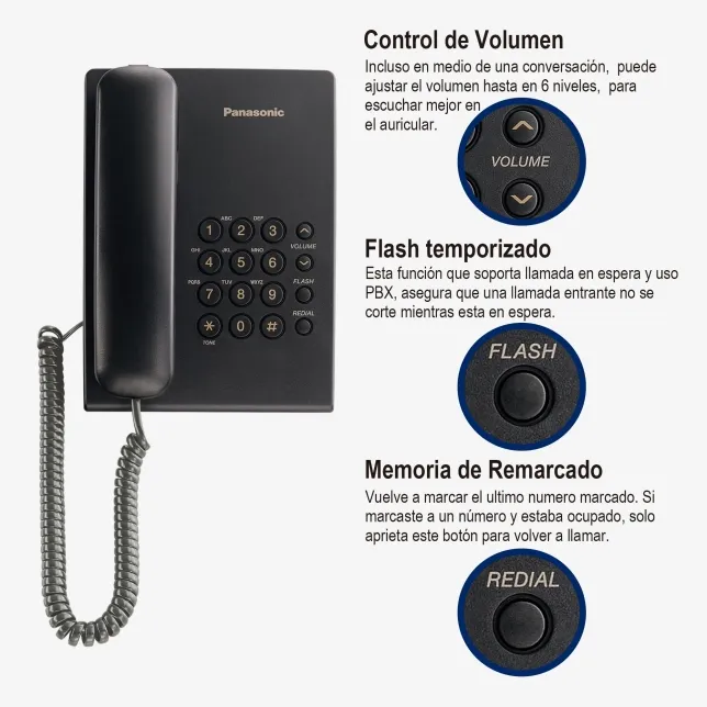 El teléfono de mesa Panasonic KX-TS500 en color negro es una opción ideal para quienes buscan un dispositivo funcional y confiable. Con un diseño clásico y elegante, este teléfono se adapta perfectamente a cualquier entorno, ya sea en el hogar o en la oficina. Su pantalla digital de 1″ permite una fácil visualización de la información, mientras que su teclado retroiluminado facilita la marcación en condiciones de poca luz.