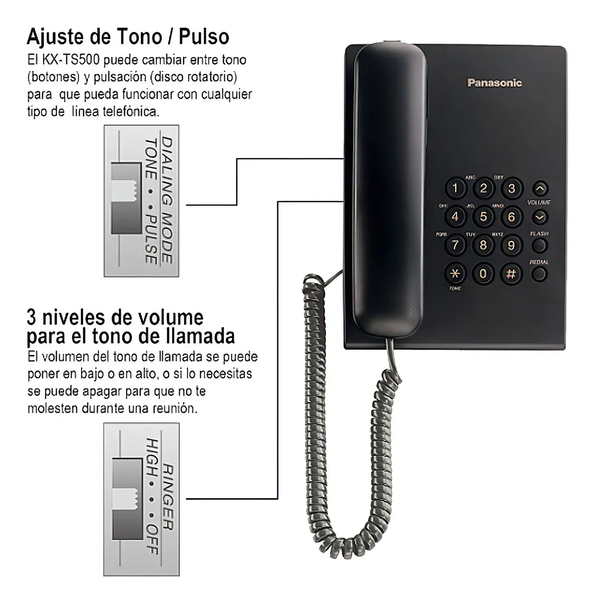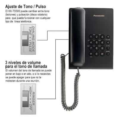 El Panasonic KX-TS500 es un teléfono de alimentación por cable, lo que garantiza una conexión constante y sin interrupciones. Su control de volumen del auricular y modo silencio ofrecen una experiencia de uso personalizada. Este dispositivo es ideal para quienes valoran la simplicidad y la funcionalidad en sus comunicaciones diarias.