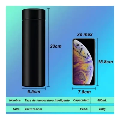 Con una capacidad de 500 mL, este termo digital garantiza que tus bebidas se mantengan frías o calientes durante 6 horas, gracias a su eficiente sistema de aislamiento. Su tapa de rosca asegura un cierre hermético, evitando derrames y garantizando que cada sorbo sea tan refrescante o cálido como lo desees.