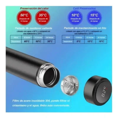 Descubre la Termo Digital Botella de Agua Inteligente de acero inoxidable, un accesorio esencial para quienes buscan funcionalidad y estilo en su vida diaria. Con un diseño elegante y moderno, este termo es ideal para llevar tu bebida preferida a cualquier lugar, ya sea en la oficina, el gimnasio o durante un paseo al aire libre.