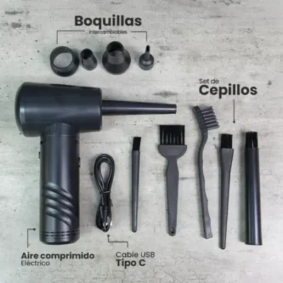 Cada componente del producto se ha fabricado con materiales de alta calidad, asegurando durabilidad y eficiencia durante su uso. La tecnología de aire comprimido permite limpiar sin causar daños, lo que lo convierte en un aliado indispensable para el cuidado de tus dispositivos y superficies.